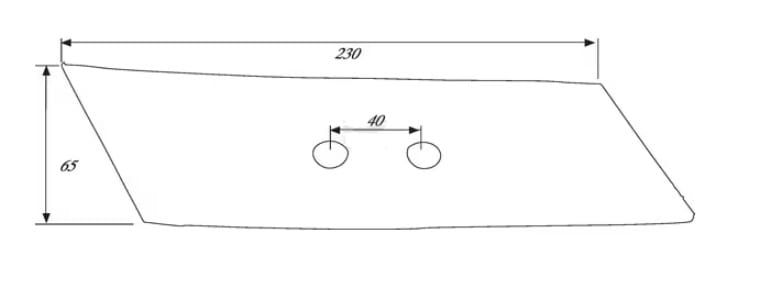 Nakładka ma długość 230 mm, grubość 12 mm, szerokość 65 mm i jest wyposażona w 2 otwory montażowe o średnicy 13 mm z rozstawem 40 mm – co gwarantuje idealne dopasowanie do szerokiej gamy korpusów pługów.