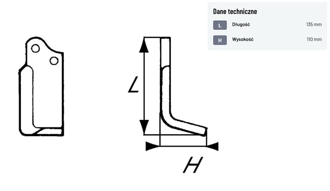 Nóż frezujący lewy 135x110x50mm 5mm pasuje do Agria