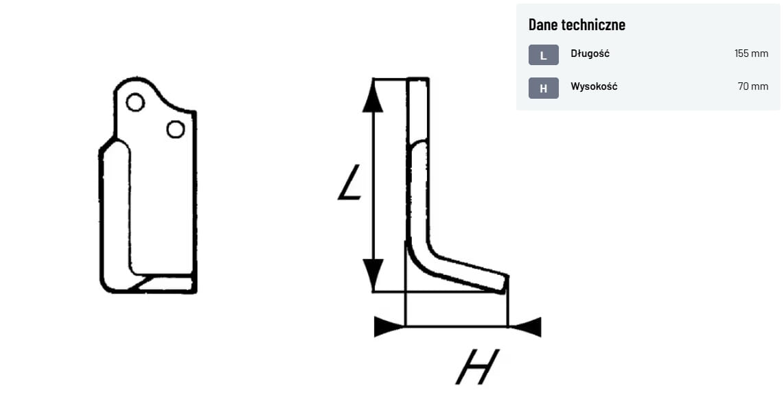 Nóż frezujący lewy 155x70x50mm 5mm pasuje do Agria