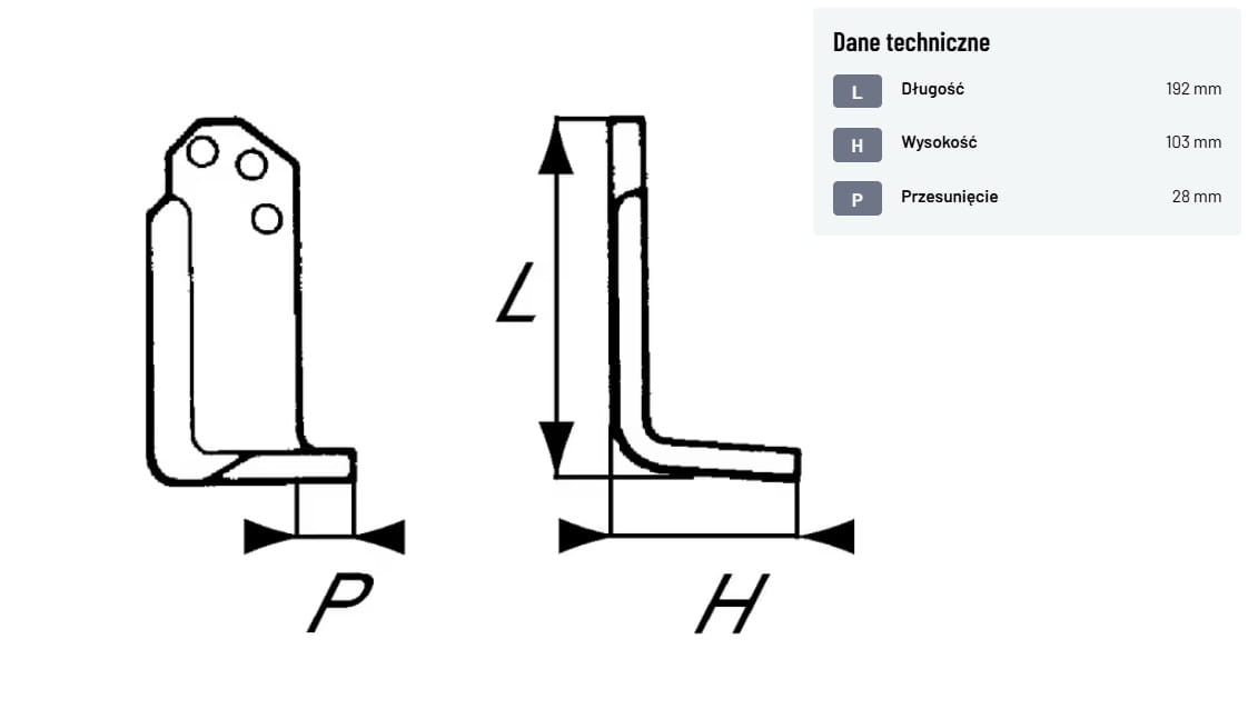 Nóż frezujący lewy 192x48x70mm 6mm pasuje do Agria