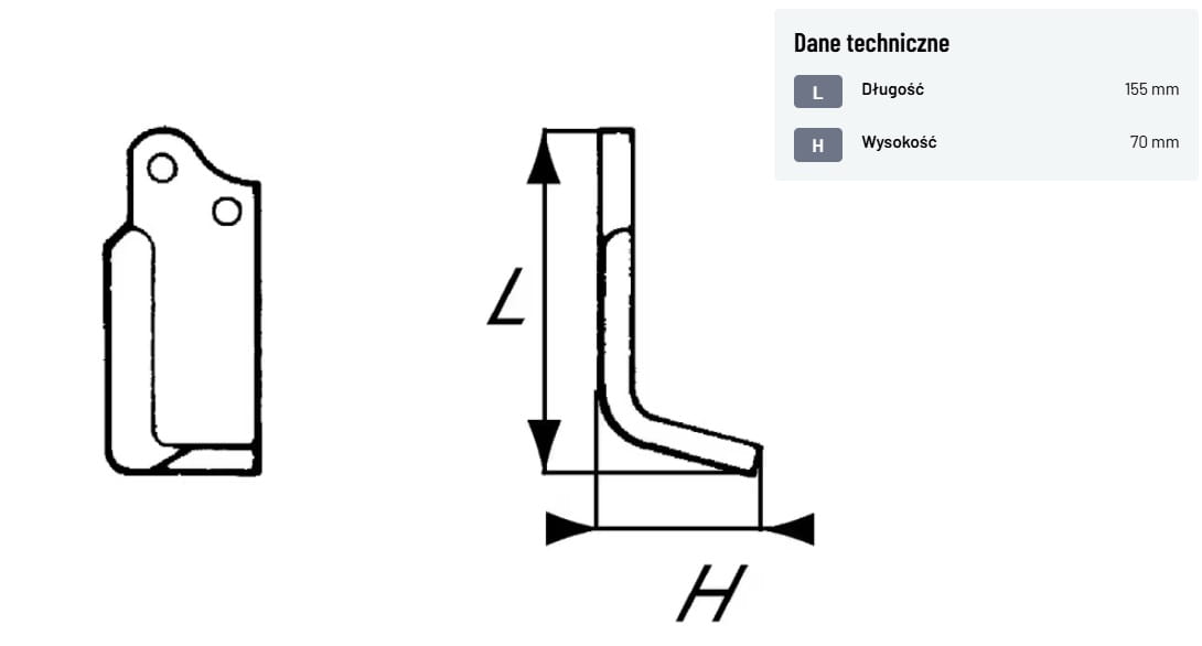 Nóż frezujący prawy 155x70x50mm 5mm pasuje do Agria