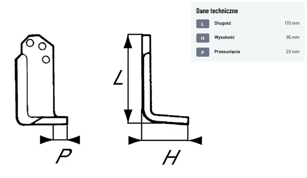Nóż frezujący prawy 170x95x60mm 6mm pasuje do Agria