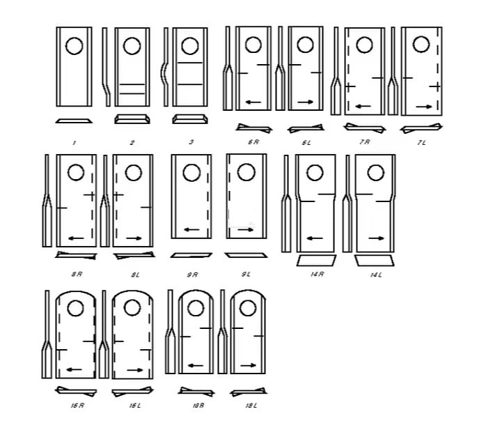 Nożyk kosiarki rotacyjnej, prawy 110x4 mm Fella