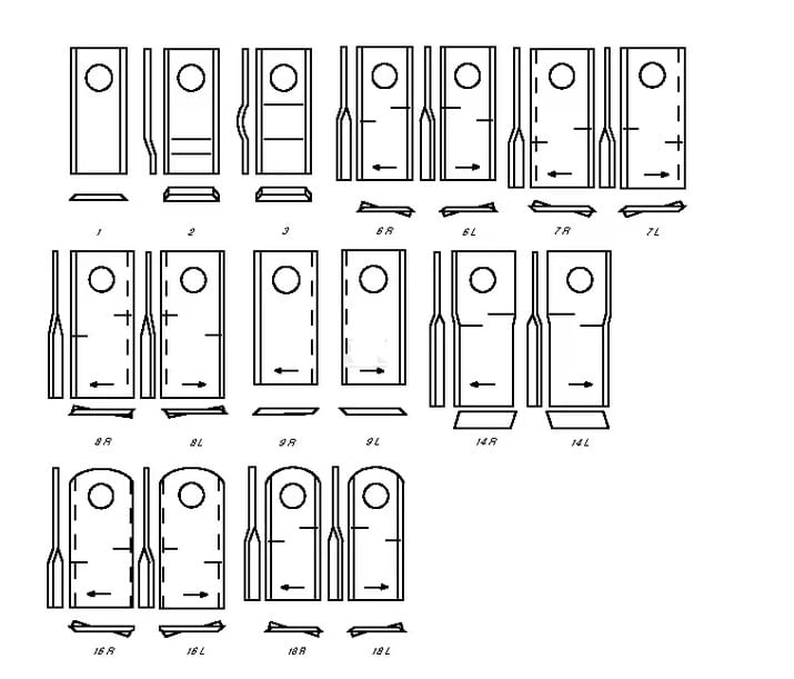Nożyk kosiarki rotacyjnej lewy/prawy 90x40x3 mm otwór Ø 19 mm okrągły pasuje do Deutz Fahr/PZ 25 szt.