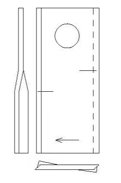 Nożyk kosiarki rotacyjnej prawy 118x48x4 mm otwór Ø 19 mm okrągły pasuje do Fella