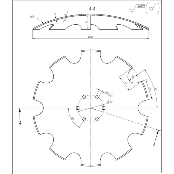 Talerz brony uzębiony, 560x4 mm, 6 otworów 123 mm rozstaw