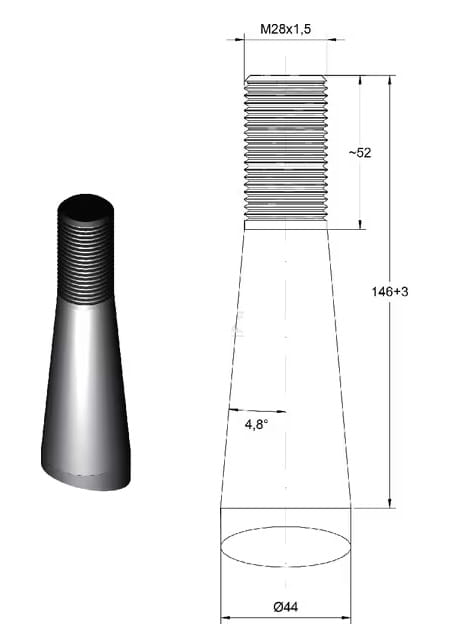 Ząb ładowacza, prosty, profil kwadratowy 44x820 mm końcówka szpiczasta z nakrętką M28x1.5 czerwony SHW