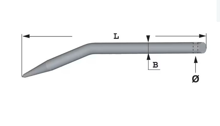 Ząb ładowacza, zagięty, profil okrągły 25x550 mm końcówka szpiczasta z otworem Ø 12.5 na kołek sprężysty czarny FST