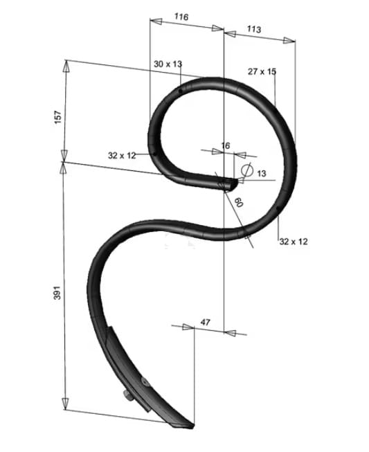Ząb sprężynowy, 32x12x548 mm z redliczką